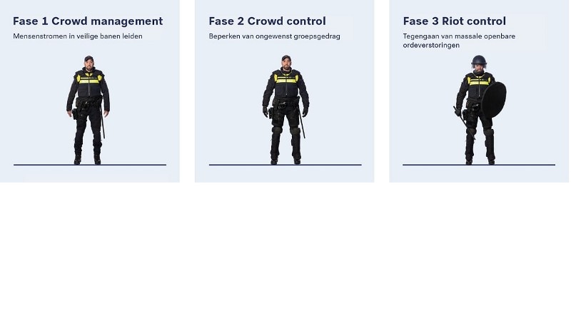 Het flexconcept van de Mobiele Eenheid geeft de politie de mogelijkheid om afhankelijk van de situatie en de mate van openbare ordeverstoringen op te treden. De politie kent hierin drie faseringen. Afhankelijk van de fase zien ME'ers er anders uit en treden zij anders op.