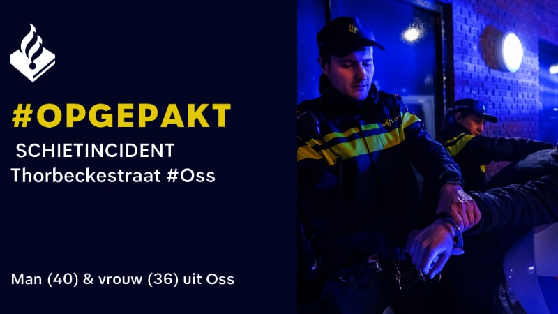 Het opsporingsonderzoek naar de 40-jarige verdachte resulteerde later die dag in de aanhouding van de man. Ook een 36-jarige vrouw uit Oss is op zaterdag 11 februari aangehouden op verdenking van betrokkenheid bij het schietincident. Beide verdachten zijn in hun woonplaats opgepakt. Zij zijn naar een politiebureau overgebracht en worden gehoord over deze zaak. Update zondag 12 februari: de 36-jarige vrouw is in vrijheid gesteld. Zij blijft echter wel verdachte in het onderzoek.