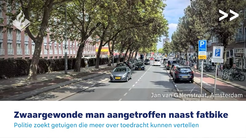 Een zwaargewonde man werd afgelopen zondagochtend aangetroffen op het fietspad van de Jan van Galenstraat. Het gaat niet goed met de man. In het onderzoek naar de toedracht is nog veel onduidelijk. De politie zoekt daarom getuigen.