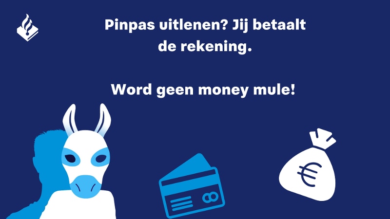 Je stelt je bankrekening beschikbaar in ruil voor geld of dure spullen. Het is te mooi om waar te zijn en je komt van een koude kermis thuis. Je faciliteert oplichters en de pakkans is bij jou het grootst. Je bent altijd traceerbaar, met alle gevolgen van dien, zoals het niet kunnen krijgen van een hypotheek of in de schulden terecht komen. Word daarom geen geldezel! Geef nooit je pinpas af en neem nooit geld op in opdracht van iemand anders. Word je benaderd? Neem contact op met de politie, dat kan ook anoniem