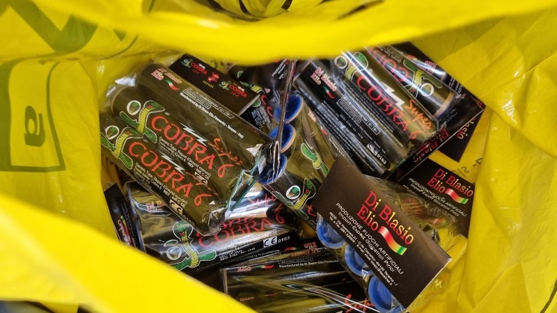 In hun auto is een hoeveelheid Cobra’s, lawinepijlen en Shells aangetroffen. Het gaat om een totale hoeveelheid van tien kilo; 45 Cobra’s, zes shells en vijftien lawinepijlen. Ook in beide woningen van de verdachten is gezocht naar deze explosieven. De zoektocht leverde nog eens 73 lawinepijlen op.