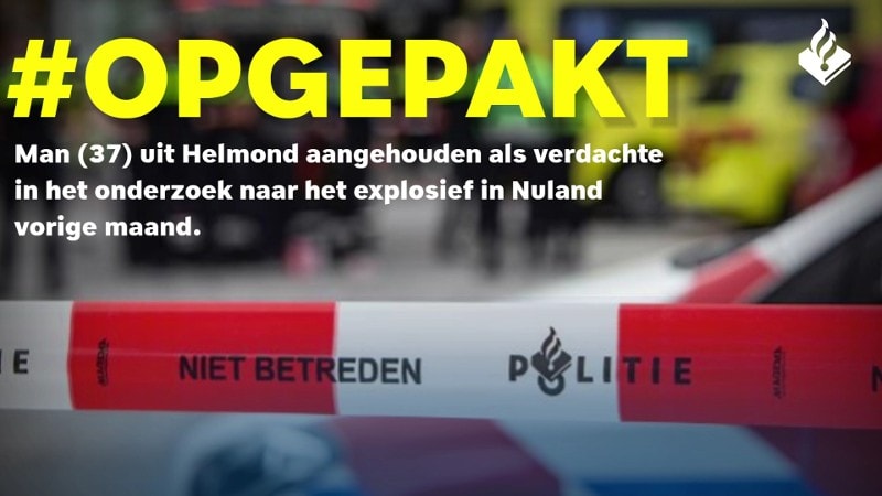 Een 37-jarige man uit Helmond is gisteren aangehouden in het onderzoek naar het explosief in Nuland vorige maand. Een voorbijganger ontdekte toen namelijk een verdacht pakketje in de bosjes bij een aantal woningen aan de Nulandse Zomerdijk.