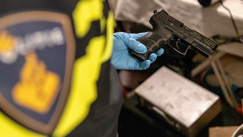 Bij de doorzoeking vonden agenten meerdere vuurwapens én vermoedelijk explosieven. De explosieven bleken na onderzoek namaak te zijn, maar wel ter afdreiging geschikt. De vuurwapens zijn vermoedelijk gas- en alarmpistolen die vermoedelijk werden omgebouwd naar vuurwapens. De politie nam de hoeveelheid wapens en de namaak explosieven in beslag. Ook namen agenten de nodige drugs en een groot geldbedrag in beslag. De politie zet het onderzoek voert.