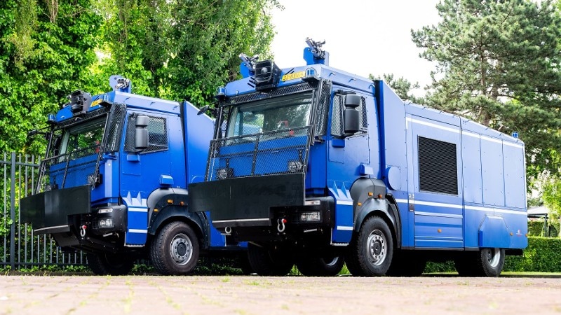 Het wagenpark van de politie is uitgebreid met twee waterwerpers uit Italië. De gehuurde voertuigen staan momenteel in Den Haag en zijn naar verwachting eind juni operationeel inzetbaar. De komende weken worden de bemanningsleden opgeleid.
