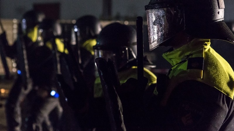 Dit is een verschil met de situatie op het Roeterseiland op 6 mei waar wel is gevorderd door de UvA en ook aangifte is gedaan van erfvredebreuk. De driehoek vindt het niet verantwoord om op dit moment de verschillende barricades rond het terrein te ontruimen. De kans op escalatie en wanordelijkheden is groot en bij gebrek aan genoeg voorbereidingstijd en agenten levert dat een onveilige situatie op voor de politie, activisten en omstanders. Deze besluiten gelden alleen voor de komende nacht.’