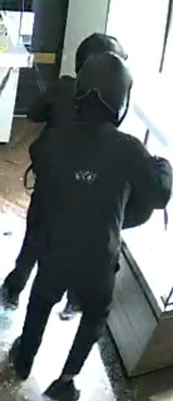 - De verdachten: Drie mannen, die alle drie een donkere helm en donkere kleding droegen. Ze reden op twee scooters; een daarvan heeft witte onderdelen. Verdachte 2 (zie foto’s) leek iets goudkleurigs in zijn helm te hebben en had een print op de rug van zijn jas.