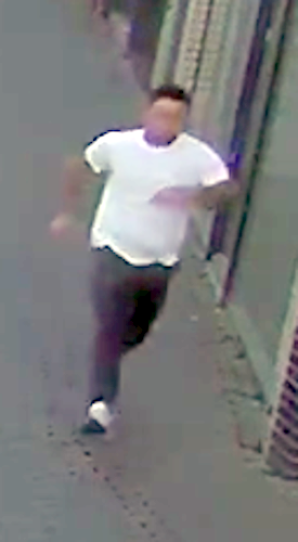- Verdachte 1: man met wit T-shirt, donkere broek en lichte schoenen. Stevig postuur en donker haar.