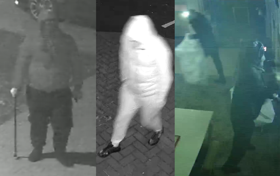 - De verdachten: De verdachten hadden zichzelf zodanig vermomd dat herkenning niet eenvoudig is. Scroll daarom naar beneden voor een video met bewegende beelden. Misschien herken je iemand bijvoorbeeld aan zijn manier van bewegen en postuur.