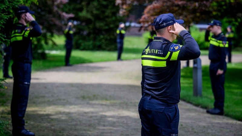 Een laatste saluut bij De Spiegelvijver; het herdenkingsmonument voor politiemensen die door suïcide zijn overleden.