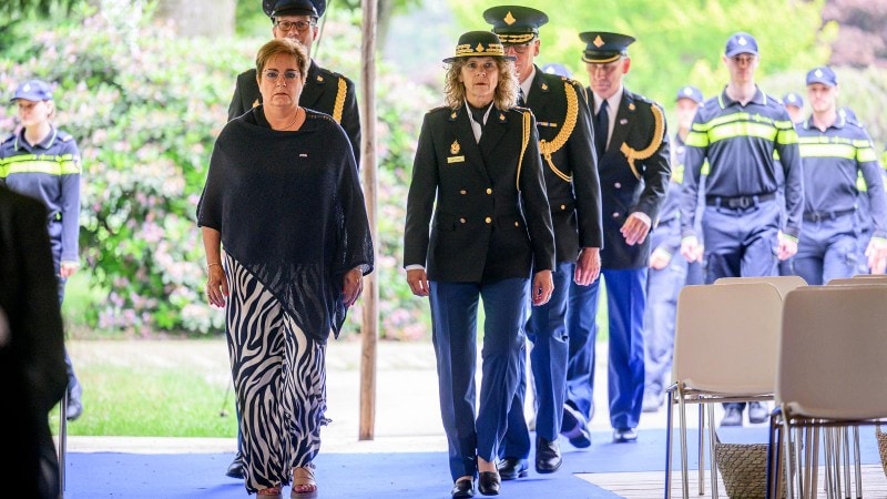 Openingsplechtigheid van De Spiegelvijver, met voorop korpschef Janny Knol (rechts) en suïcidepreventie-expert Geertje Spijkerman (links)