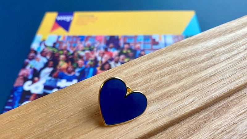 Een Blauw Hart-speld van stichting Waardering Erkenning Politie (WEP).