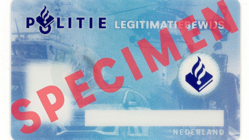 Sinds 2023 ontvangen politiemedewerkers een nieuw politielegitimatiebewijs. Dit bewijs is een kaart van polycarbonaat, net zoals een rijbewijs. Het politielegitimatiebewijs bevat meerdere zichtbare en onzichtbare echtheidskenmerken, waardoor vervalsing moeilijker wordt. Het belangrijkste kenmerk is het hologram. Wanneer u de pas beweegt, verschijnt afwisselend het politielogo of het woord ‘politie’. Hieronder ziet u een voorbeeld van het nieuwe politielegitimatiebewijs.