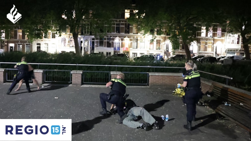 De politie kreeg rond 22.00 uur de melding dat twee mensen te water geraakt waren. Het ging om twee mannen die bij aankomst van de agenten al uit het water waren. Toen de mannen werden weggestuurd, weigerden zij dit en gingen in verzet. Eén van de verdachten heeft een politieagent een vuistslag in het gezicht gegeven. De andere verdachte probeerde het stroomstootwapen van een andere agent te pakken. Beide verdachten zijn aangehouden en daarbij is het stroomstootwapen ingezet. De verdachten zijn mannen van 26 en 41 jaar uit Den Haag.