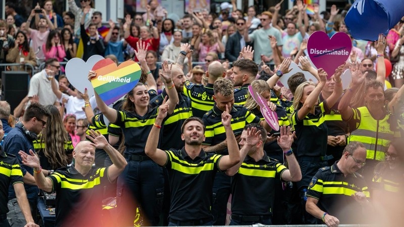 De politie deed voor de vijftiende keer mee met de Pride in Amsterdam, die dit jaar in het teken staat van het thema LOVE. Een thema dat ook raakvlakken heeft met de politie, benadrukt het politienetwerk Roze in Blauw. ‘Liefde betekent zorg en verantwoordelijkheid nemen voor de veiligheid van iedereen, zodat je vrij kunt zijn om jezelf te zijn.’