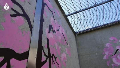 Groningen - Tot voor kort keken de arrestanten in de cellencomplexen in Leeuwarden en Groningen tijdens de luchtmomenten uit op witte of grijze betonnen muren. Een groep studenten van Academie Minerva bracht daar verandering in. In opdracht van de politie ontwierpen zij verschillende landschappen die ze op de muren van zes luchtplaatsen schilderden.